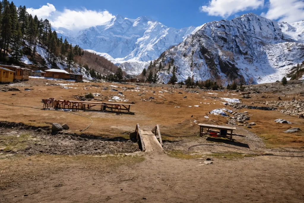 If you want to stare directly into the face of one of the world’s most fearsome mountains, Fairy Meadows is your destination. Perched at 3,300 meters, this alpine meadow offers one of the most dramatic mountain views on Earth: the near-vertical 4,600-meter Rupal Face of Nanga Parbat (8,126m) rising directly from the valley floor just a few kilometers away.